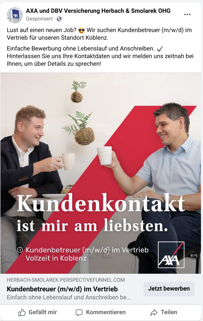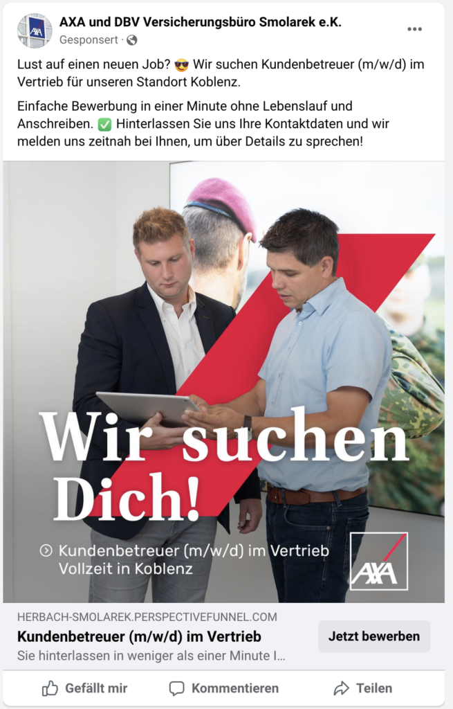 Mit unseren Maßnahmen sprechen wir gezielt potenzielle Arbeitnehmer aus dem Versicherungs- und Bankenumfeld im Raum Koblenz an.